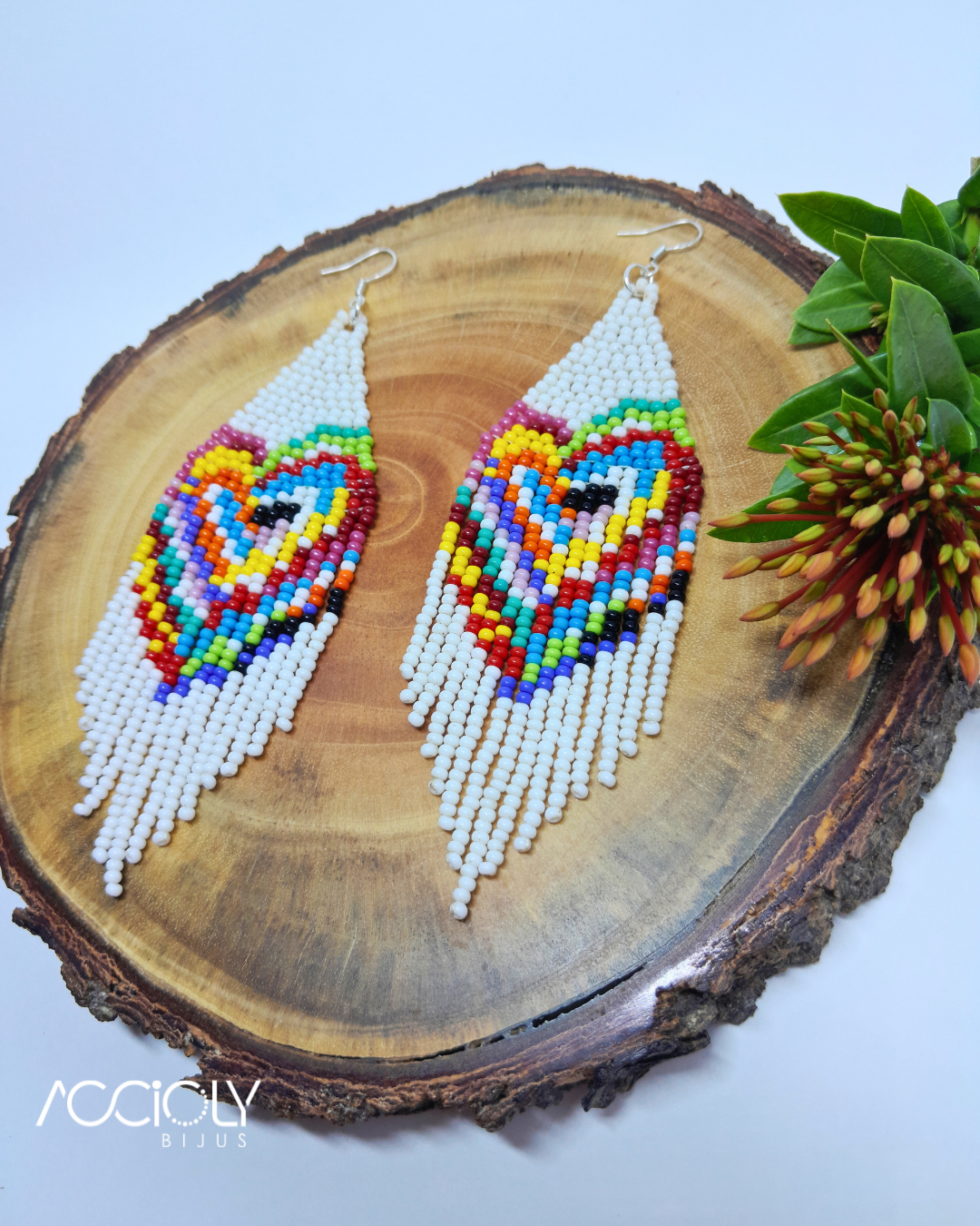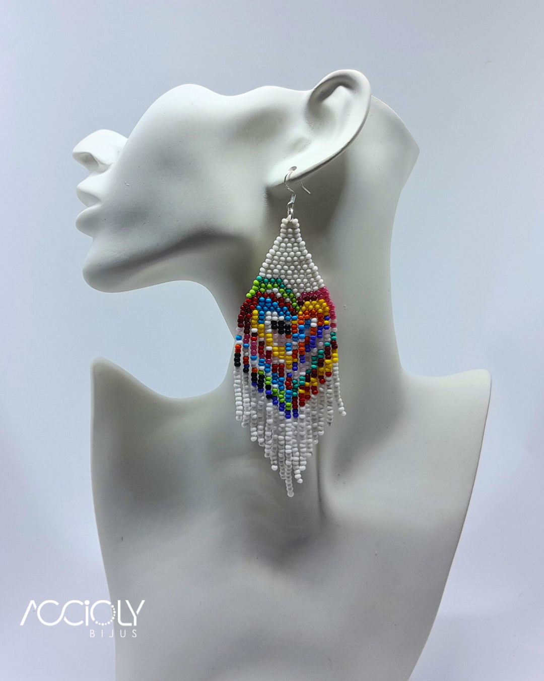 Com um coração delicadamente desenhado nas miçangas, este brinco é uma expressão de amor e estilo.